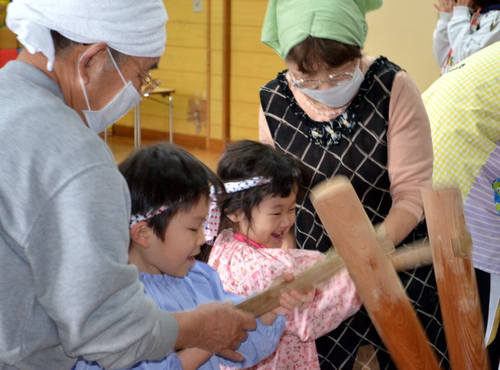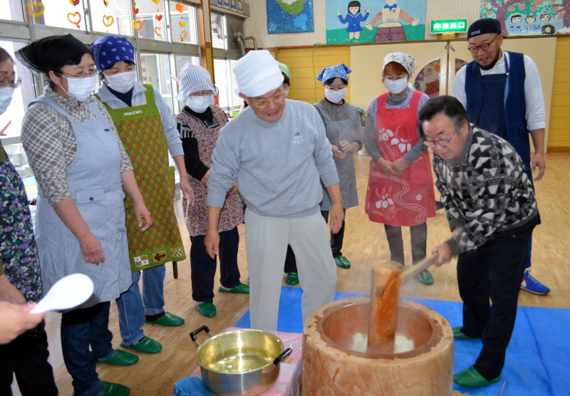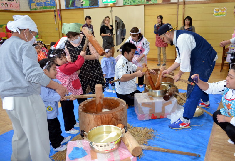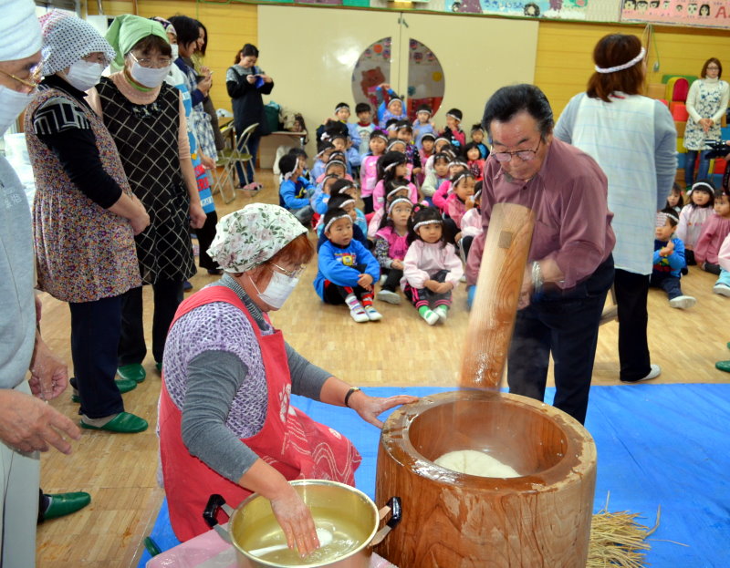 2014年12月12日 ききょう幼稚園の餅つきに参加 12月12日(金)西桔梗町の学校法人桔梗学園・ききょう幼稚園の要請で、会長ほか10人ほどが『もちつき』のお手伝いに参加してきました。「ききょう幼稚園」は、第一区内の常盤川沿いから入ったところにあって、奥に進むと建物の傍に新幹線車両がドーン!と目に入ってくる。 聞けば、300人もの園児が通っている大きな幼稚園で、全員順番に餅つきを体験させながら、大人数の餅を作ってる私たちへ歓声と声援で大賑わい。 出来たての餡餅も格別の美味さでした。 タグ :#函館市#桔梗#餅つき#ききょう#幼稚園#歓声 「広報部」カテゴリの最新記事 < 前の記事次の記事 > コメント コメントフォーム 名前 コメント 記事の評価 リセット リセット 顔 星 情報を記憶 コメントを投稿する