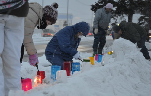 桔梗町会でキャンドル100個作成協力・点灯します
