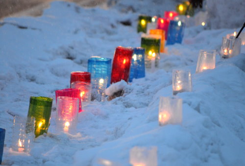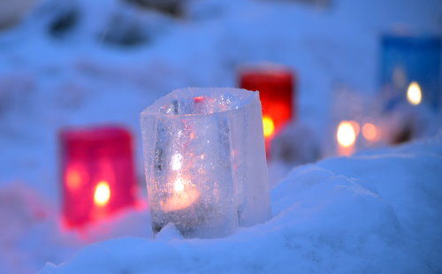 雪の中に灯るキャンドルの柔らかい光は、とても幻想的。