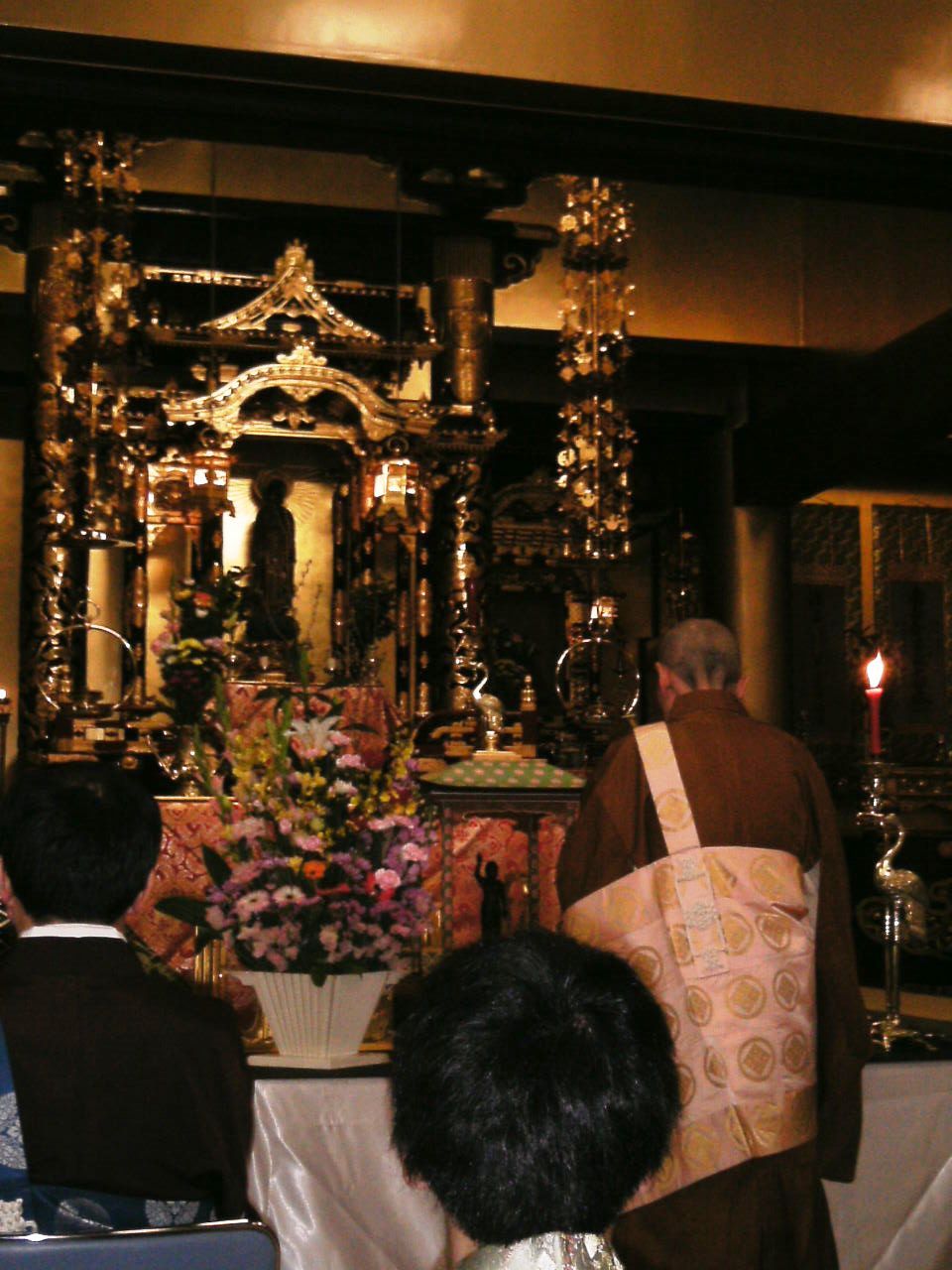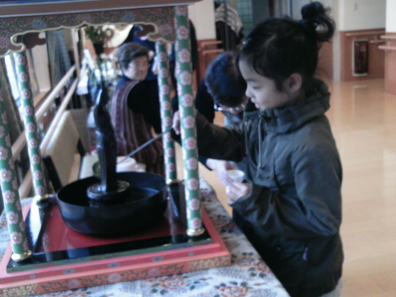 4月2日(日)桔梗町会館隣の宝皇寺にて、声明会報恩講と花まつり法要、そして演芸会がおこなわれ、50名以上の善男善女が集った。特に演芸大会は、戦時中もおこなわれていた歴史あるものである。