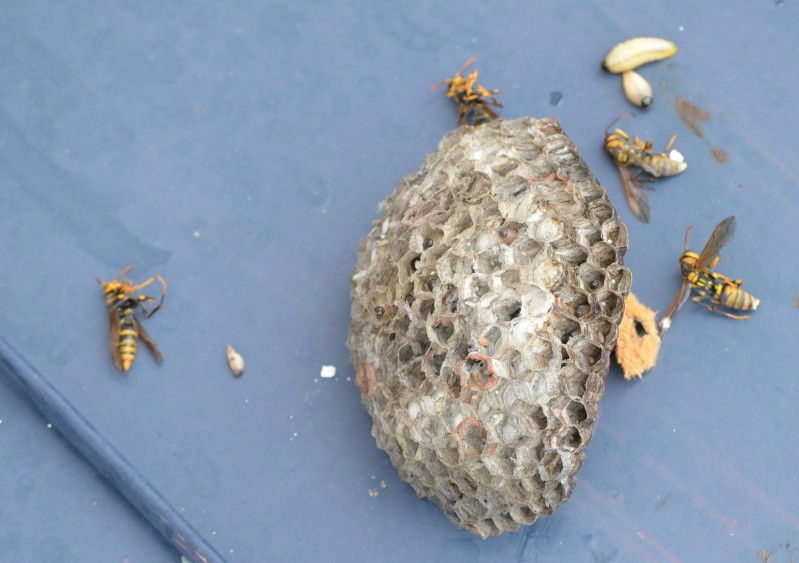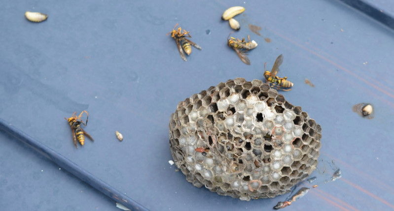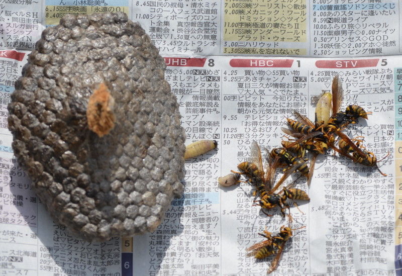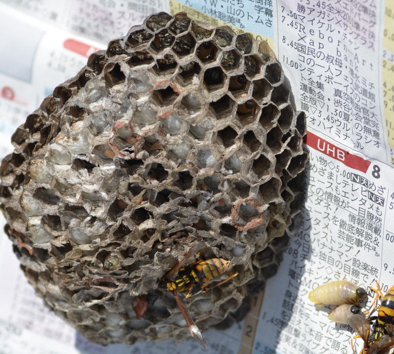14日に駆除したキアシナガバチの巣を15日午前9時過ぎ