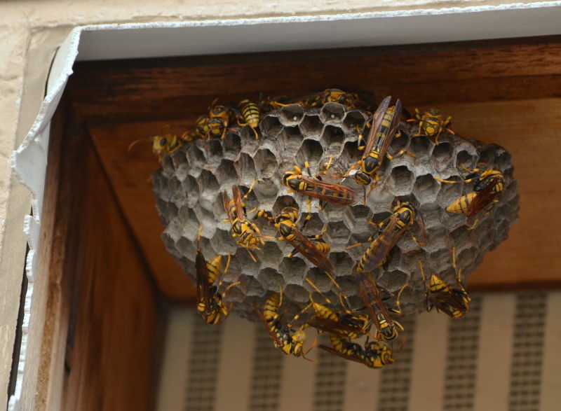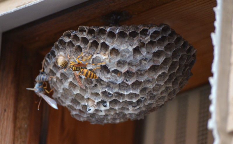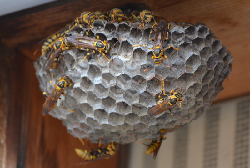 ような形の巣である。 アシナガバチのようなので近づいて写真を