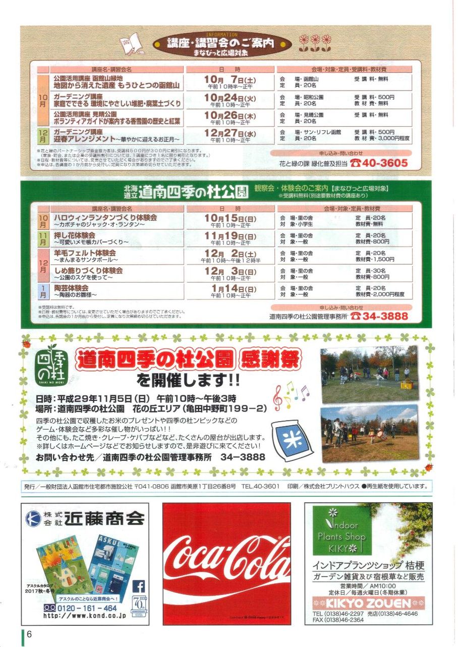 2017年10月11日 20171011 桔梗町会「回覧」です 桔梗町会会員のお宅に「回覧」が回ってる頃ですが、お手許に、残らない分をご覧下さい①「紅葉を楽しめる公園・住緑ネットワーク」②「学校花いっぱい大賞・住緑ネットワーク」③「住緑ネットワーク」④「はこだて紅葉フェスタ・住緑ネットワーク」⑤「花と緑フェスタフォトコンテスト・住緑ネットワーク」⑥「住緑ネットワーク」⑦⑧「タックスフェア」⑨⑩猫まみれ」 (k&k&k) 「広報部」カテゴリの最新記事 < 前の記事次の記事 > コメント コメントフォーム 名前 コメント 記事の評価 リセット リセット 顔 星 情報を記憶 コメントを投稿する
