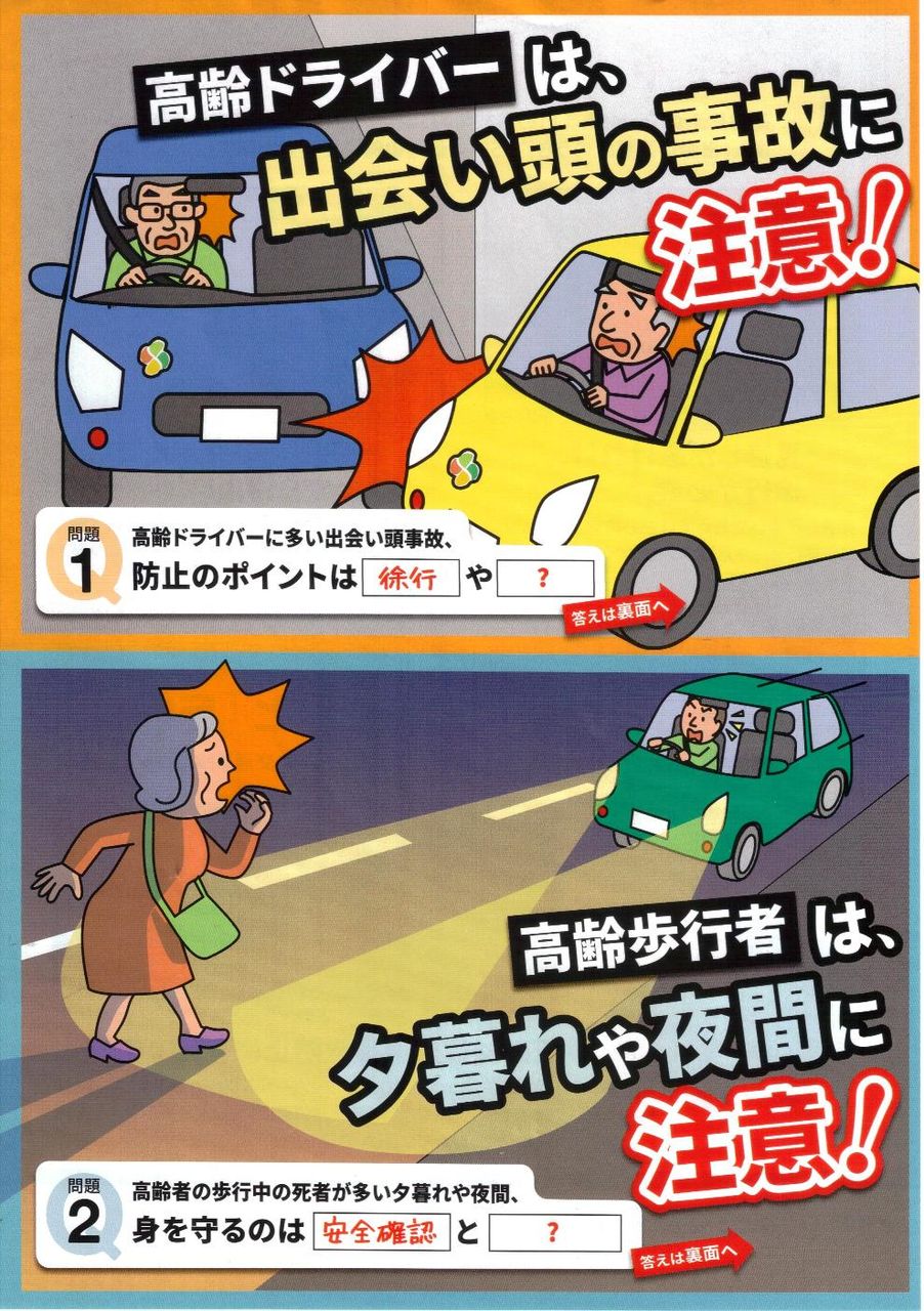 2017年10月17日 「日没が早くなりました」 日没が早くなる雨の夕方の運転は、嫌なものです運転者からは、<歩行者が良く見えない>歩行者は、足元が気になって、<周囲を良く見てない>対策として運転者は、充分注意・スピードダウン!歩行者は、目立つ色の服装で、 反射材を活用して下さい! なお、桔梗町会館に 「夜光反射材」を用意していますので ご活用下さい 「交通安全部」カテゴリの最新記事 < 前の記事次の記事 > コメント コメントフォーム 名前 コメント 記事の評価 リセット リセット 顔 星 情報を記憶 コメントを投稿する