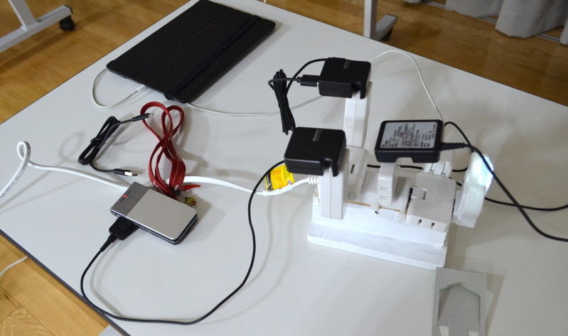 手順について学び、実際に携帯電話やスマートフォンの充電を体験した。