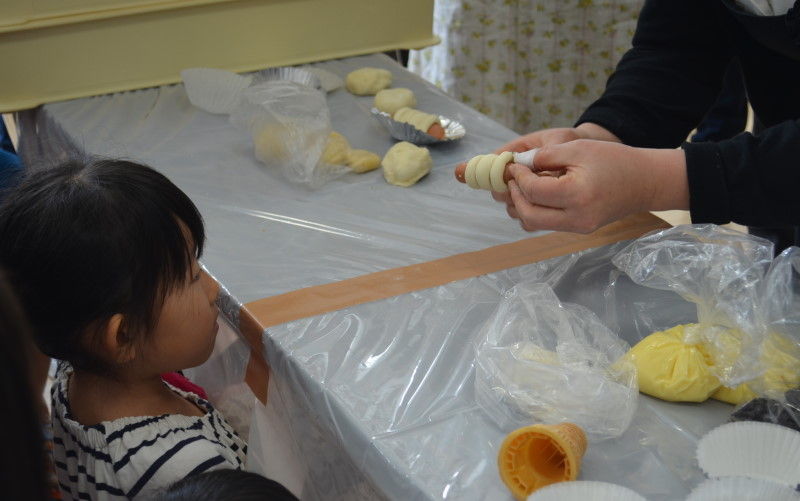 パンを作ってみんな嬉しそう! 焼き上げる時間まで、阿保さんによる数