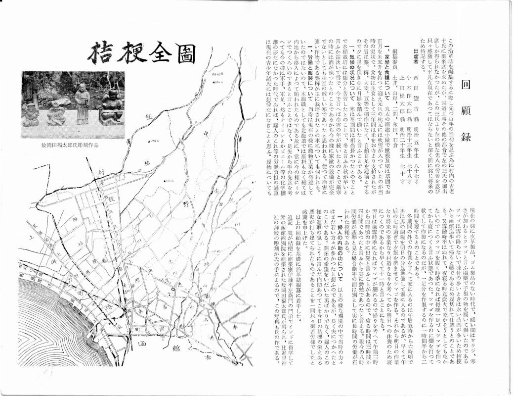 この沿革誌を編纂するに際し、まず100年の当初を偲ぶために村内の古老10氏にご