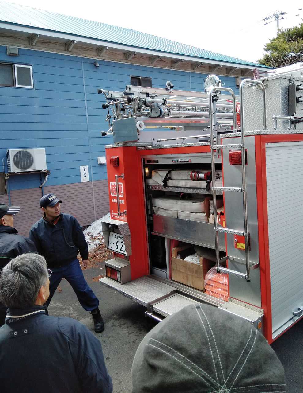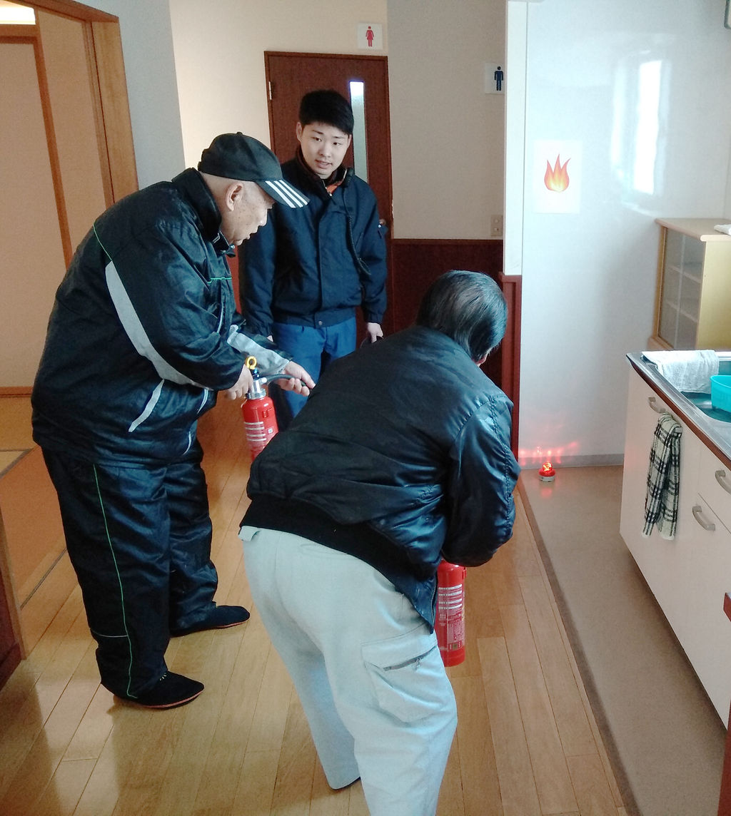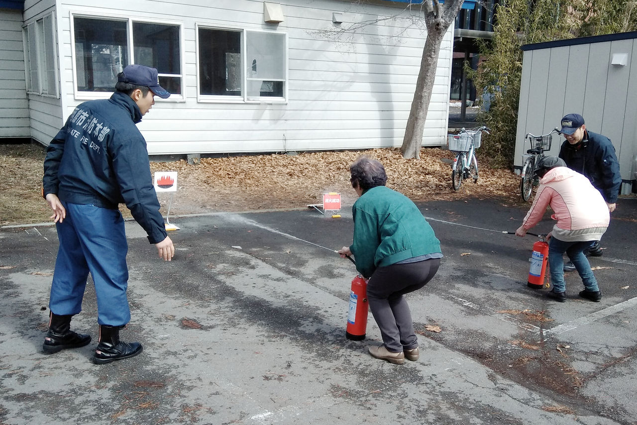 今回、函館市消防本部北消防署の署員が指導を行った。訓練は会館2階の流し台