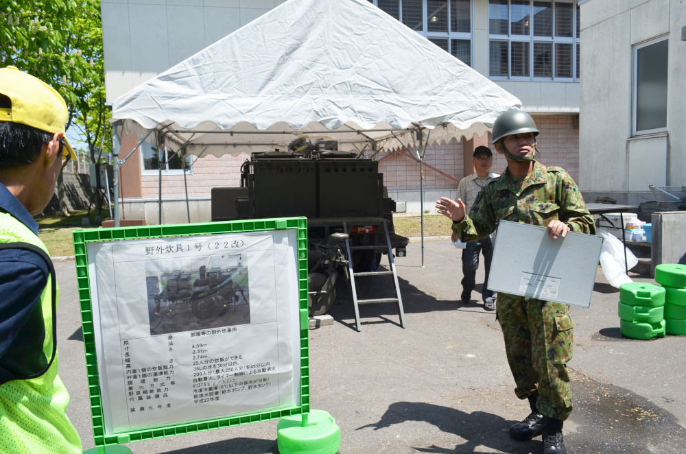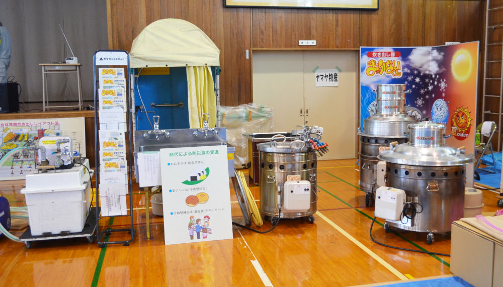 炊き出し訓練、防災車両展示、映像伝送訓練、防災講和。