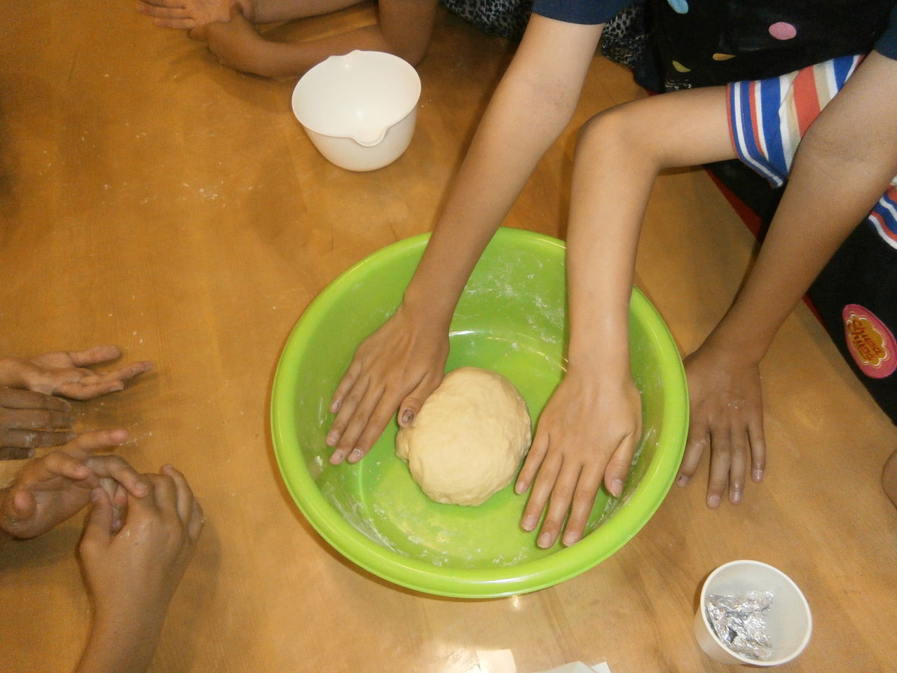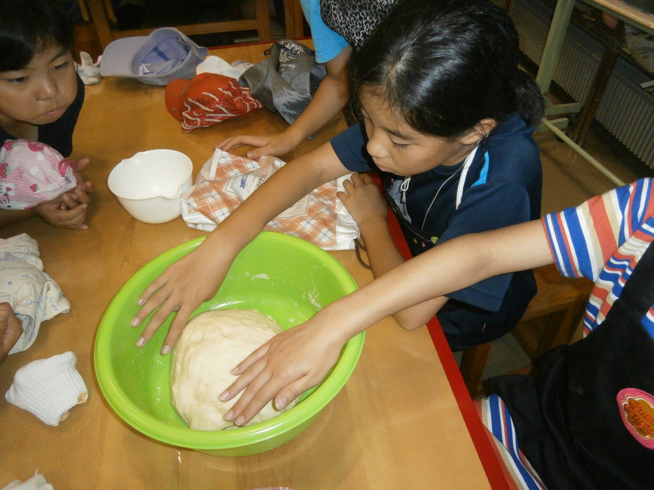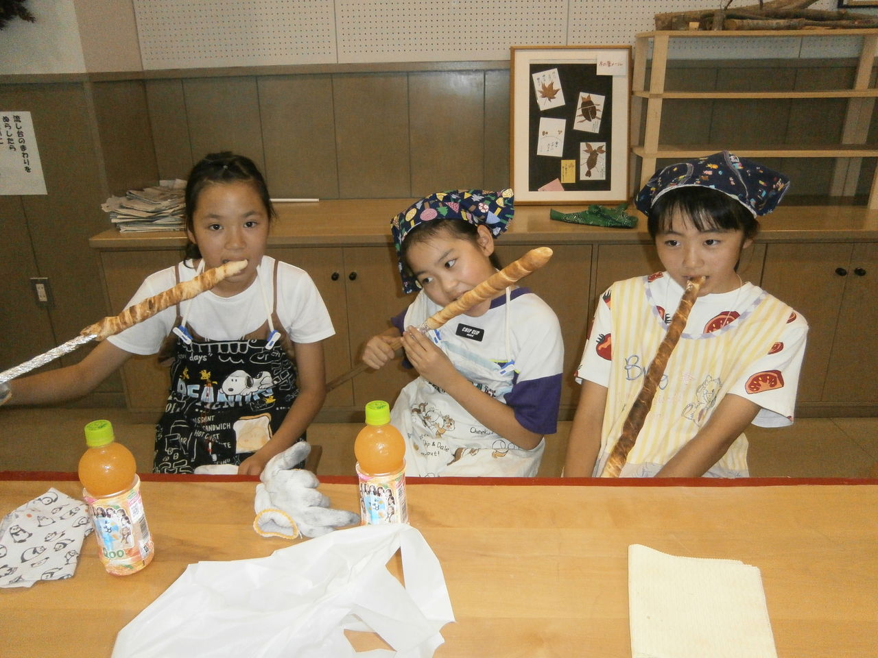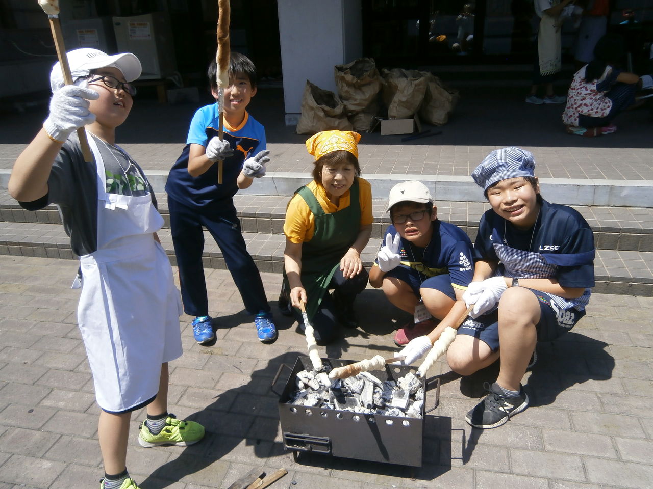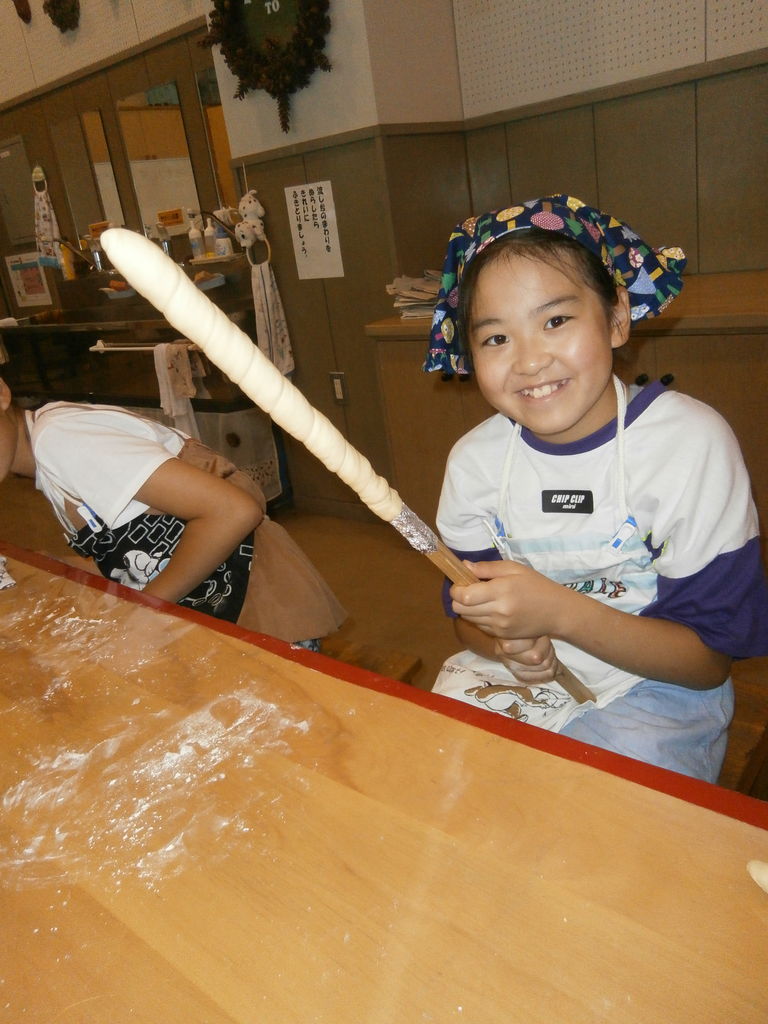 翌日は、小麦粉にイ-ストを混ぜ発酵させることから始まるパン作り。炭火を熾して、そのパンを焼いていただいた。発酵前と発酵後の大きさに感動であった。