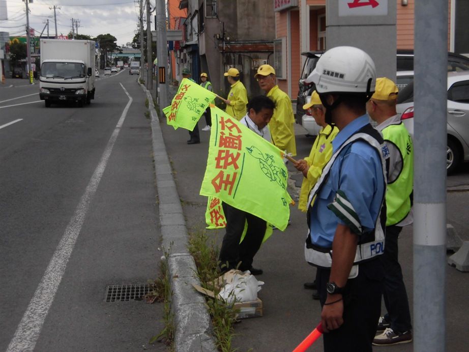 地推(函館中央地域交通安全活動推進委員協議会)から6名の応援と