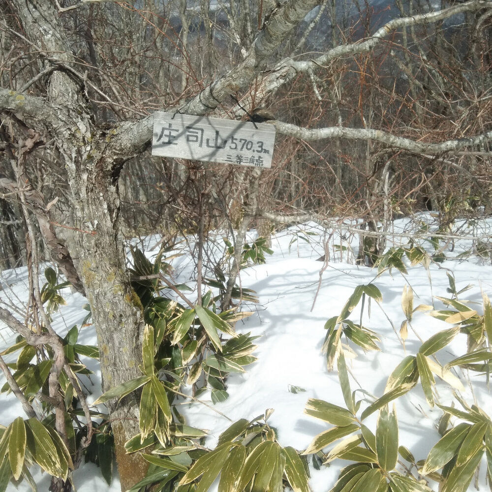 てるうち少し雪で滑るので念のため軽アイゼンを装着して登り、約90分ほど