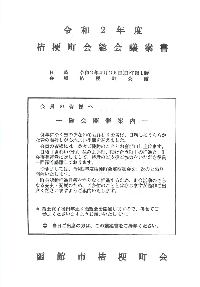 3月24日(火)桔梗町会役員会において協議した結果、『令和