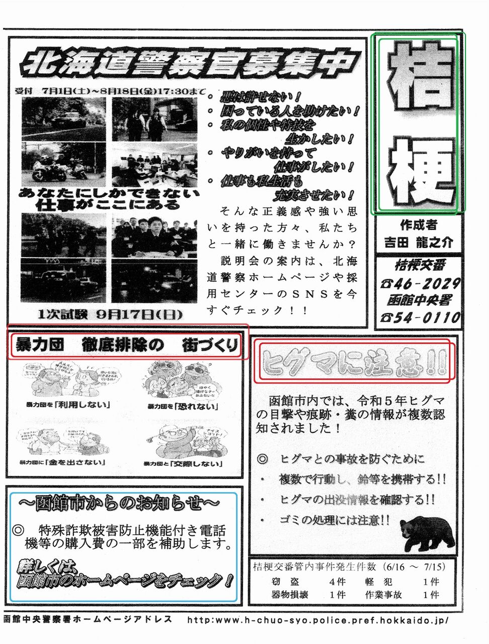 2023年08月18日 「桔梗交番だより 8 ?月号」(2023-08-17) 「桔梗交番だより 8 ?月号」(2023-08-17)が寄せられました◎「ヒグマに注意!!」 ◎「暴力団徹底排除の街づくり!!」 「防犯防災部」カテゴリの最新記事 < 前の記事次の記事 > コメント コメントフォーム 名前 コメント 記事の評価 リセット リセット 顔 星 情報を記憶 コメントを投稿する
