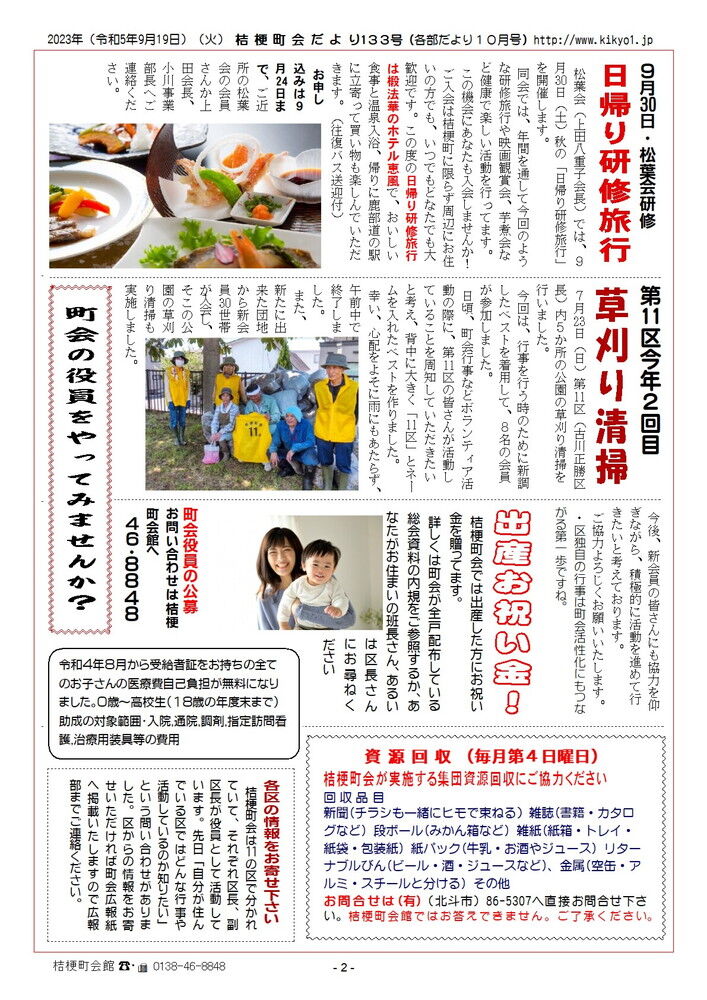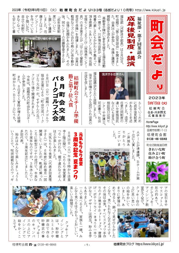 9月19日(火)桔梗町会広報紙「町会だより133号&各部