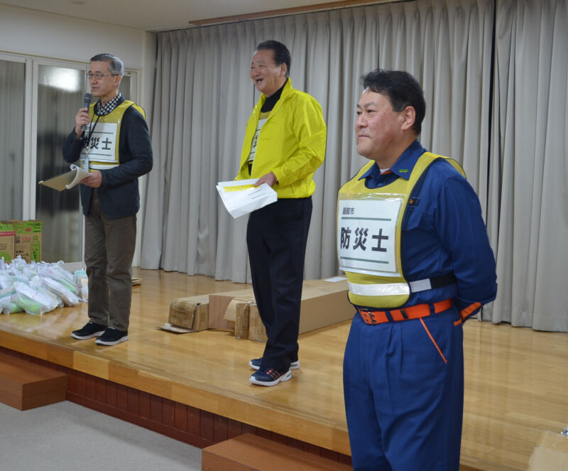 防災士会から3名の防災士の方に指導していただきました。