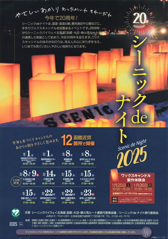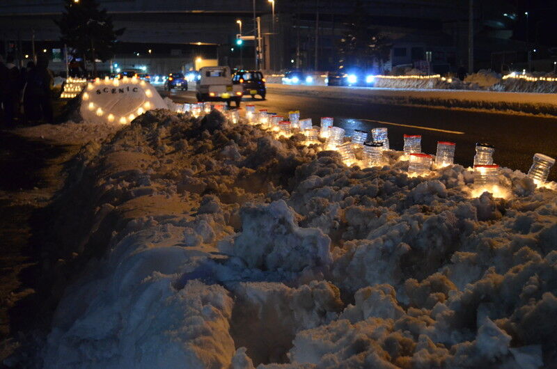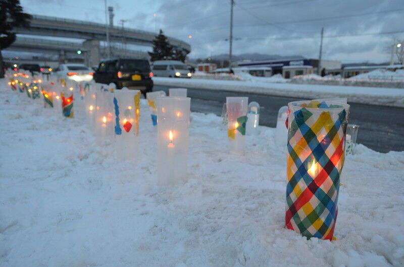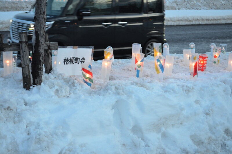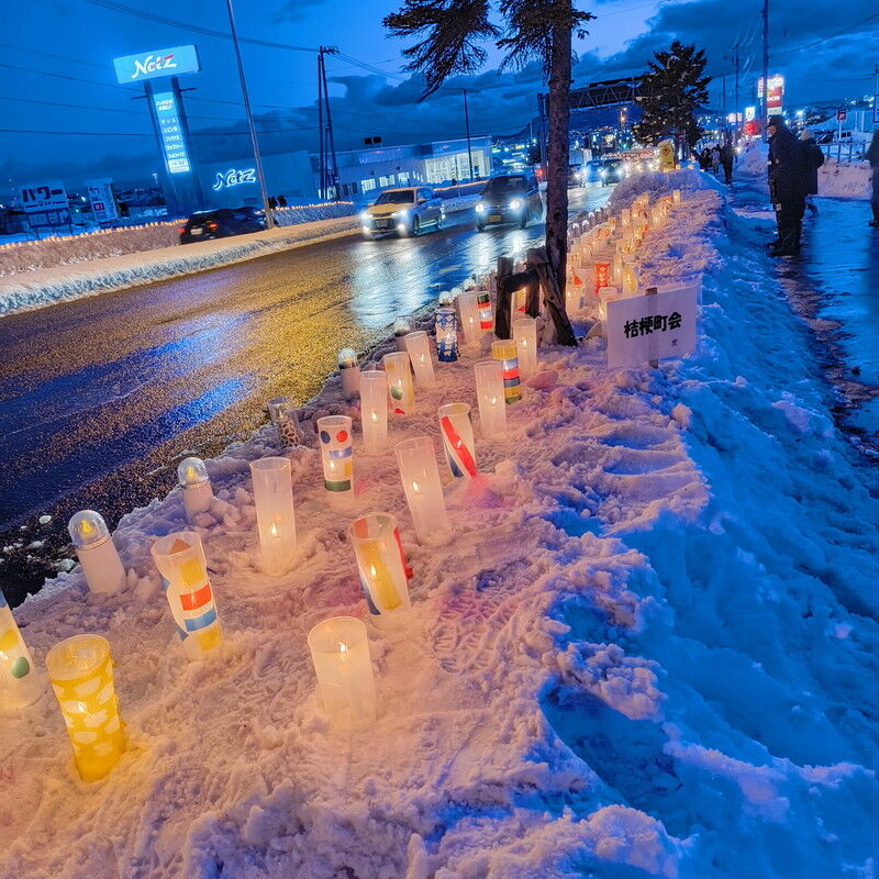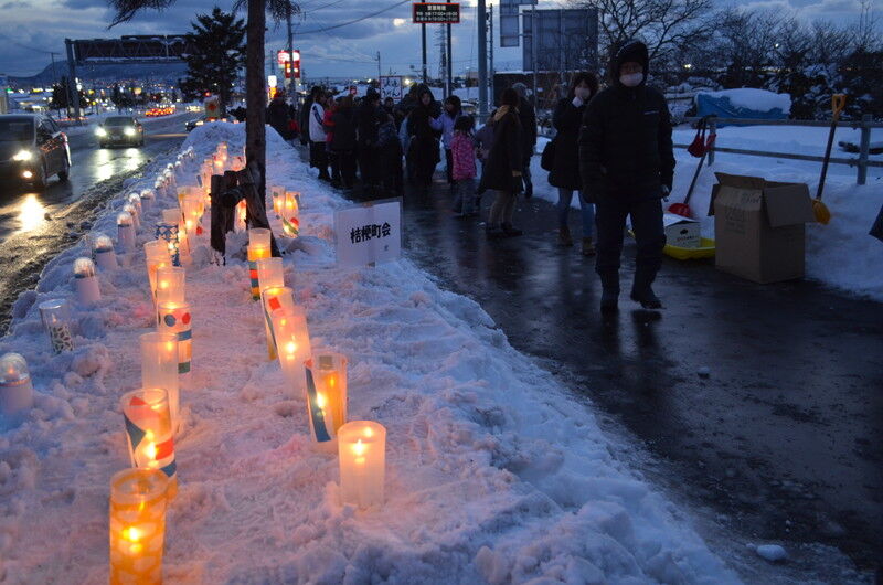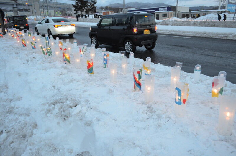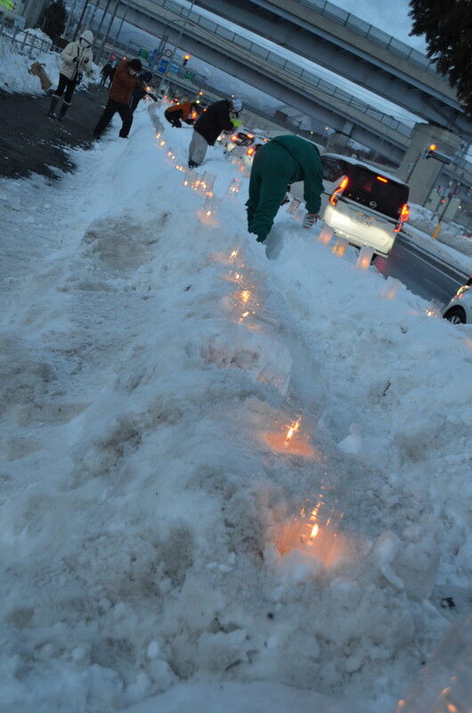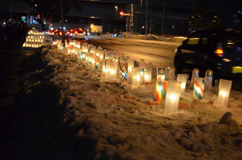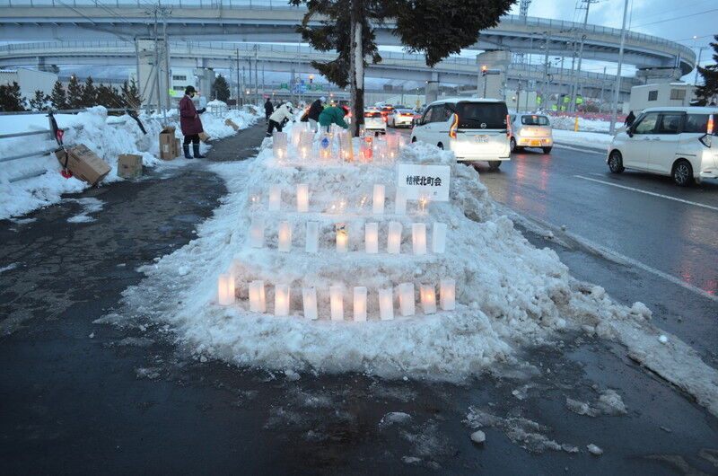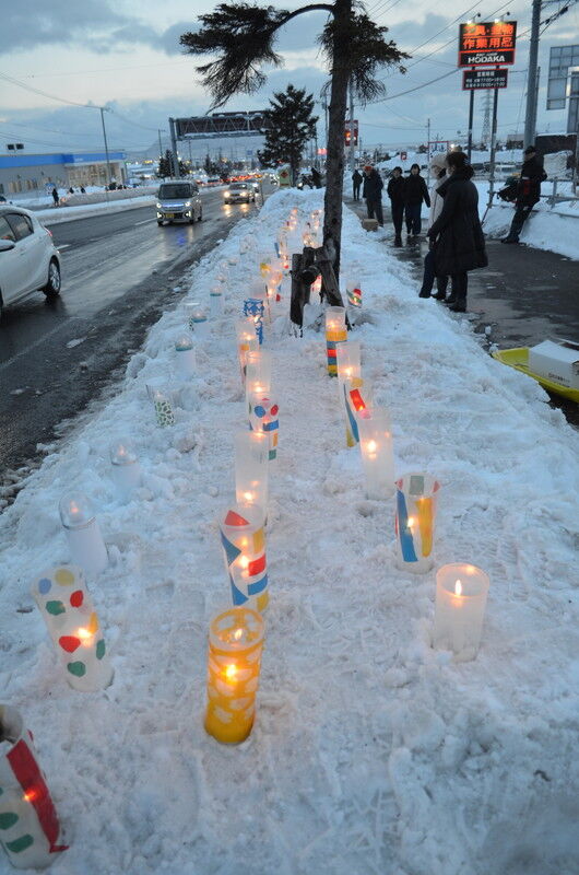 2025年02月10日 函館新道・キャンドルの灯り 『シーニック de ナイト 2025』 2025年2月8日(土)17:00~18:00まで函館新道、ホーマック石川店、イオン、花の湯、ネッツトヨタ辺り両側道の植樹カ所に積もった雪の上に、ローソクなどで灯りで照らしました。 今年は見物客も多く来ていたように思いました。 タグ :#シーニックdeナイト#2025#キャンドル#函館新道#灯り#ホーマック石川#ネッツトヨタ 「広報部」カテゴリの最新記事 < 前の記事次の記事 > コメント コメントフォーム 名前 コメント 記事の評価 リセット リセット 顔 星 情報を記憶 コメントを投稿する