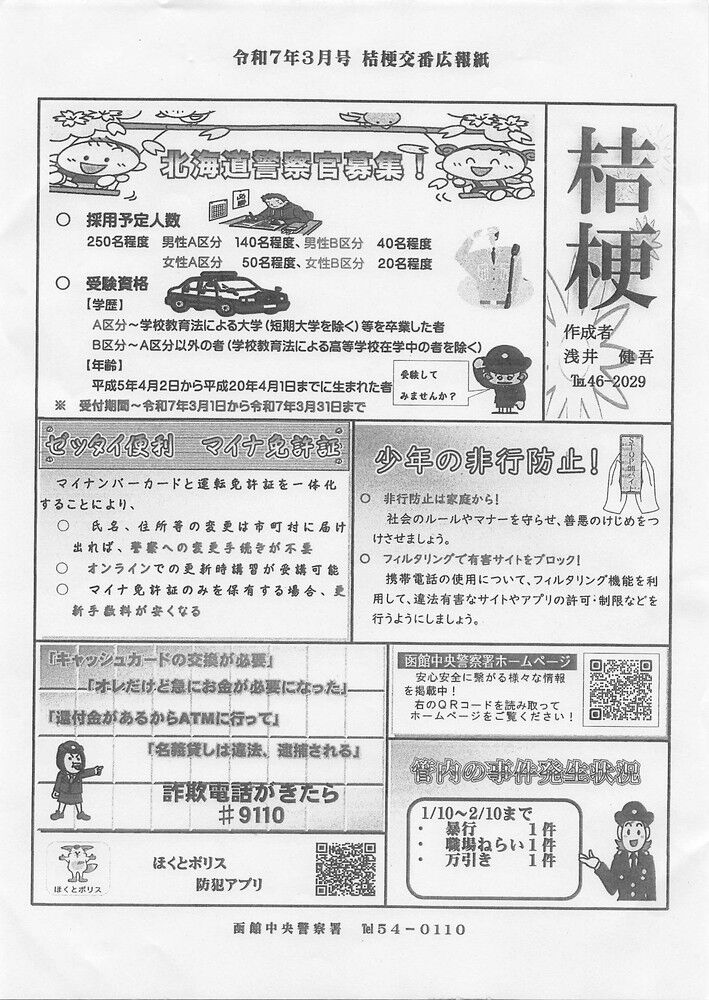 2025年03月20日 中の沢小学校だより、桔梗交番広報、就労支援センターより 中の沢小学校だより、桔梗交番広報、就労支援センターより各所からのお知らせやご案内などの広報紙です。 タグ :#桔梗交番#中の沢小学校#就労支援センター#広報#お知らせ#ご案内 「地域の活動や行事」カテゴリの最新記事 < 前の記事次の記事 > コメント コメントフォーム 名前 コメント 記事の評価 リセット リセット 顔 星 情報を記憶 コメントを投稿する