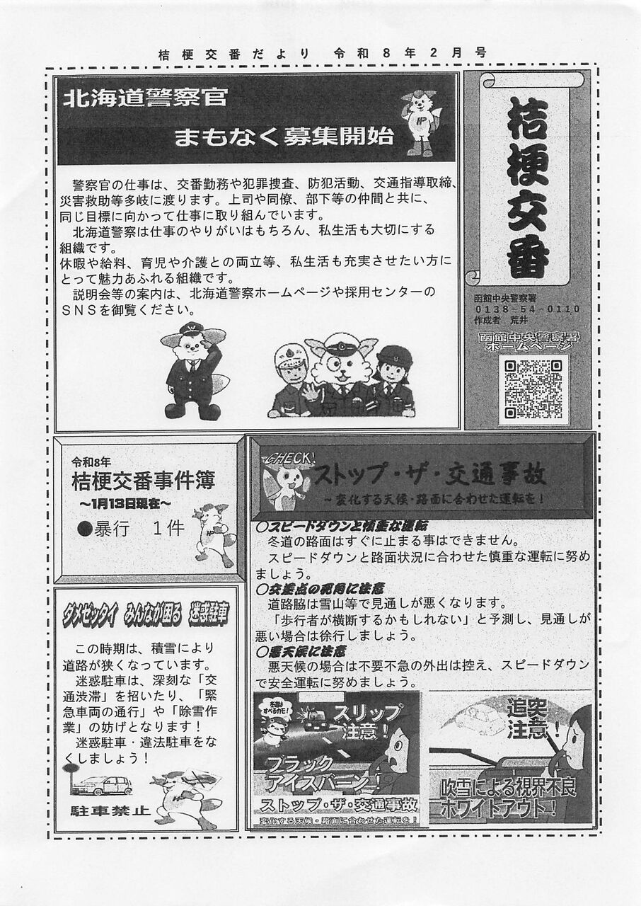 2026年02月22日 2月配布の回覧板 中の沢小学校2月行事予定など 桔梗交番「北海道警察官」募集など タグ :#回覧#桔梗小学校#2月#行事予定#桔梗交番#警察官#募集#北海道 「広報部」カテゴリの最新記事 < 前の記事次の記事 > コメント コメントフォーム 名前 コメント 記事の評価 リセット リセット 顔 星 情報を記憶 コメントを投稿する